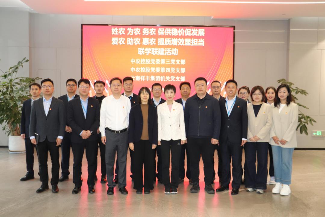 近日,云南祥豐實業集團黨支部與中農集團控股股份有限公司第三支部、第四支部開展聯學聯建主題黨日活動。其間,雙方成功簽署戰略合作協議。祥豐集團總經理楊麗芬,黨委書記魯留定,工會主席劉國昌及相關業務部門與中農控股黨委副書記、總經理王秦燕,第三支部...