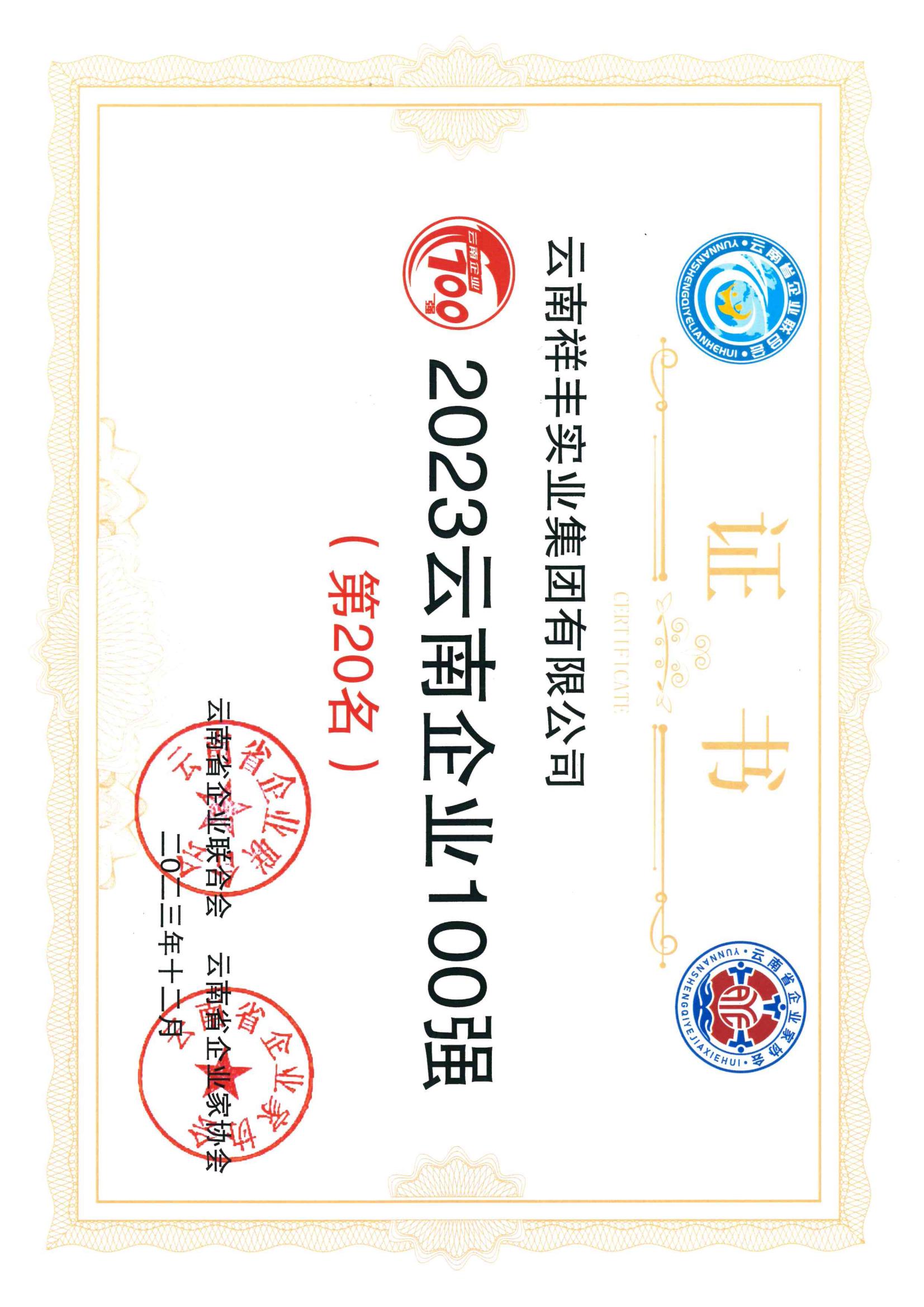 2014年7月18日,經昆明市第十二屆評優領導小組評選,云南祥豐化肥股份有限公司榮獲昆明第十二屆優秀企業、集團公司副董事長楊利榮榮獲昆明第十二屆優秀企業家,云南弘祥化工有限公司、云南祥豐金麥化工有限公司分別位列昆明地區2013年度主營業務百強企業第20名、23名;2014年7月29日經省金融辦和省民政廳批準,云南民營金融商會成立,集團公司副董事長楊利榮任商會...