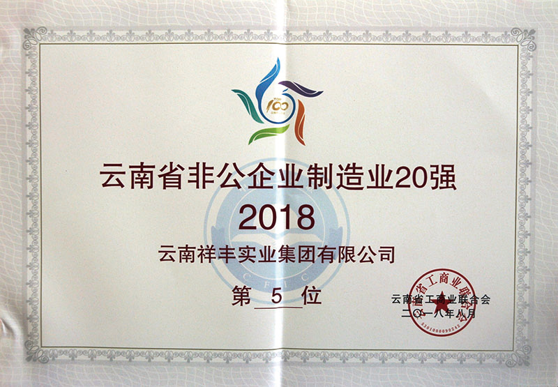 2018年12月16日,2018(第十一屆)中國化肥企業100強發布會暨國家化肥品牌計劃高峰論壇在山東青島舉行。云南祥豐集團位列中國磷復肥企業100強第十名,中國化肥企業100強第十九名