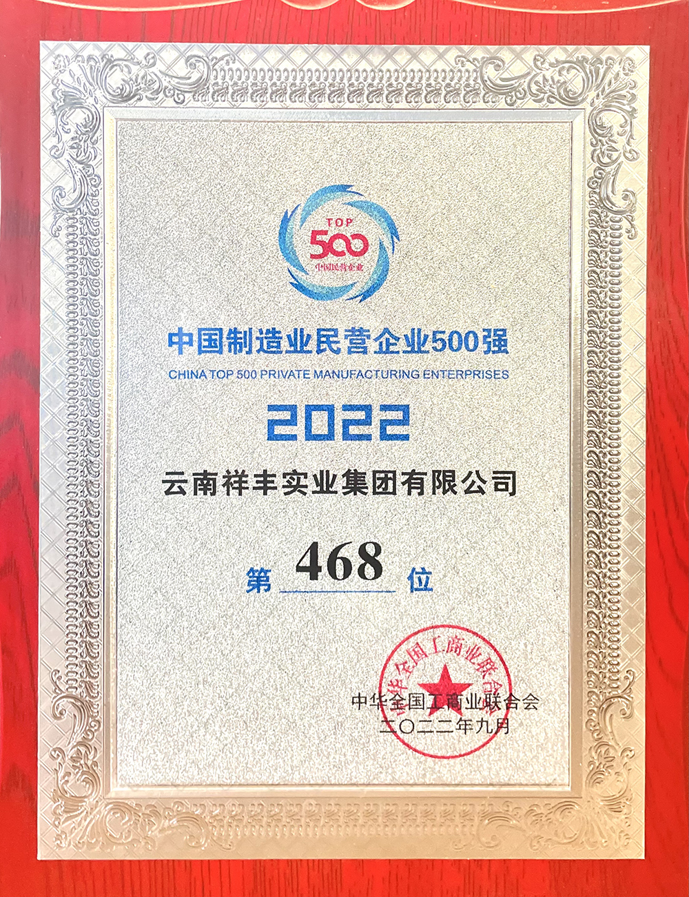 2022中國制造業(yè)民營企業(yè)500強(qiáng)(位列第468位)