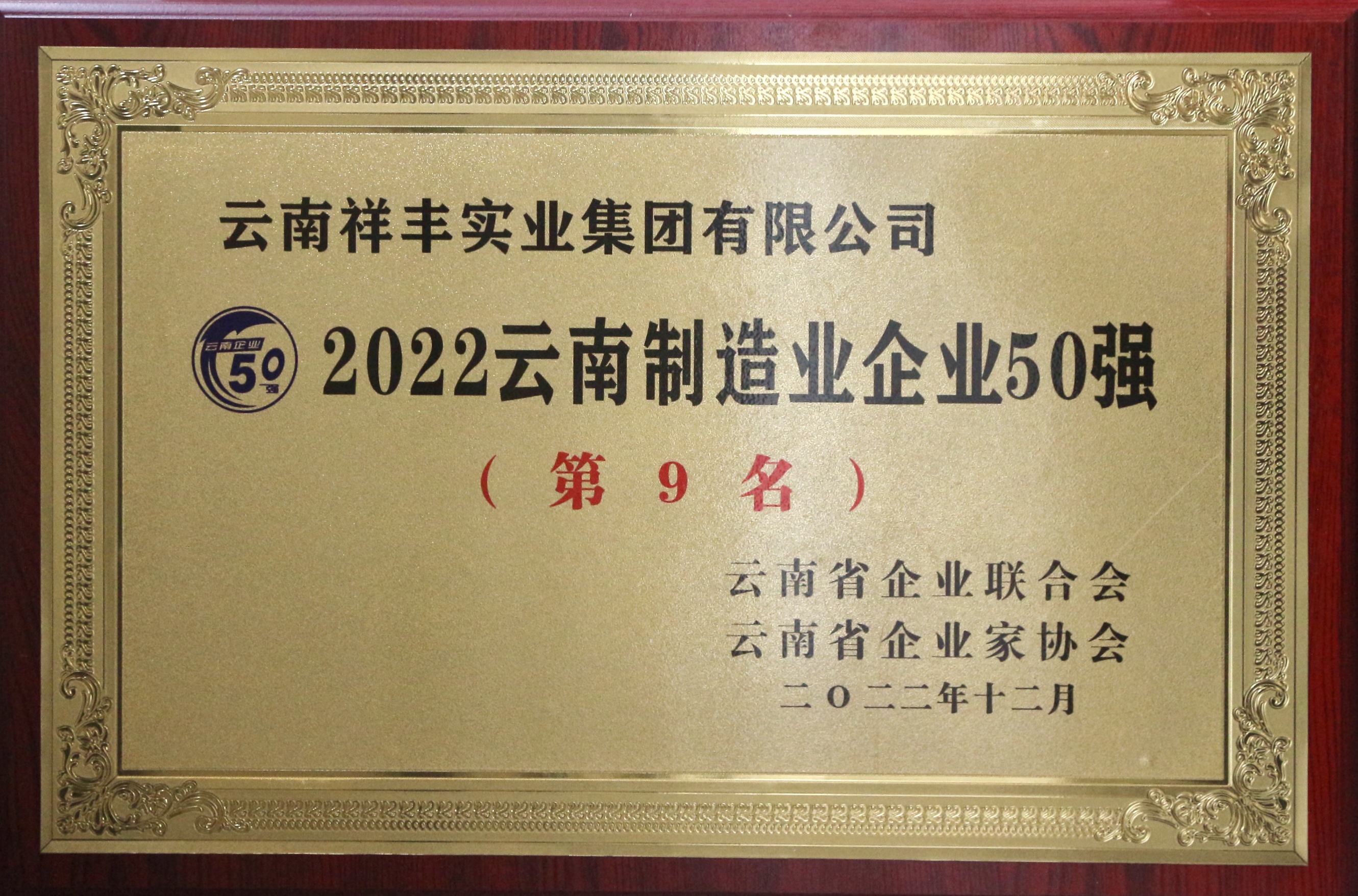 2022云南制造業(yè)企業(yè)50強(qiáng)(位列第9位)
